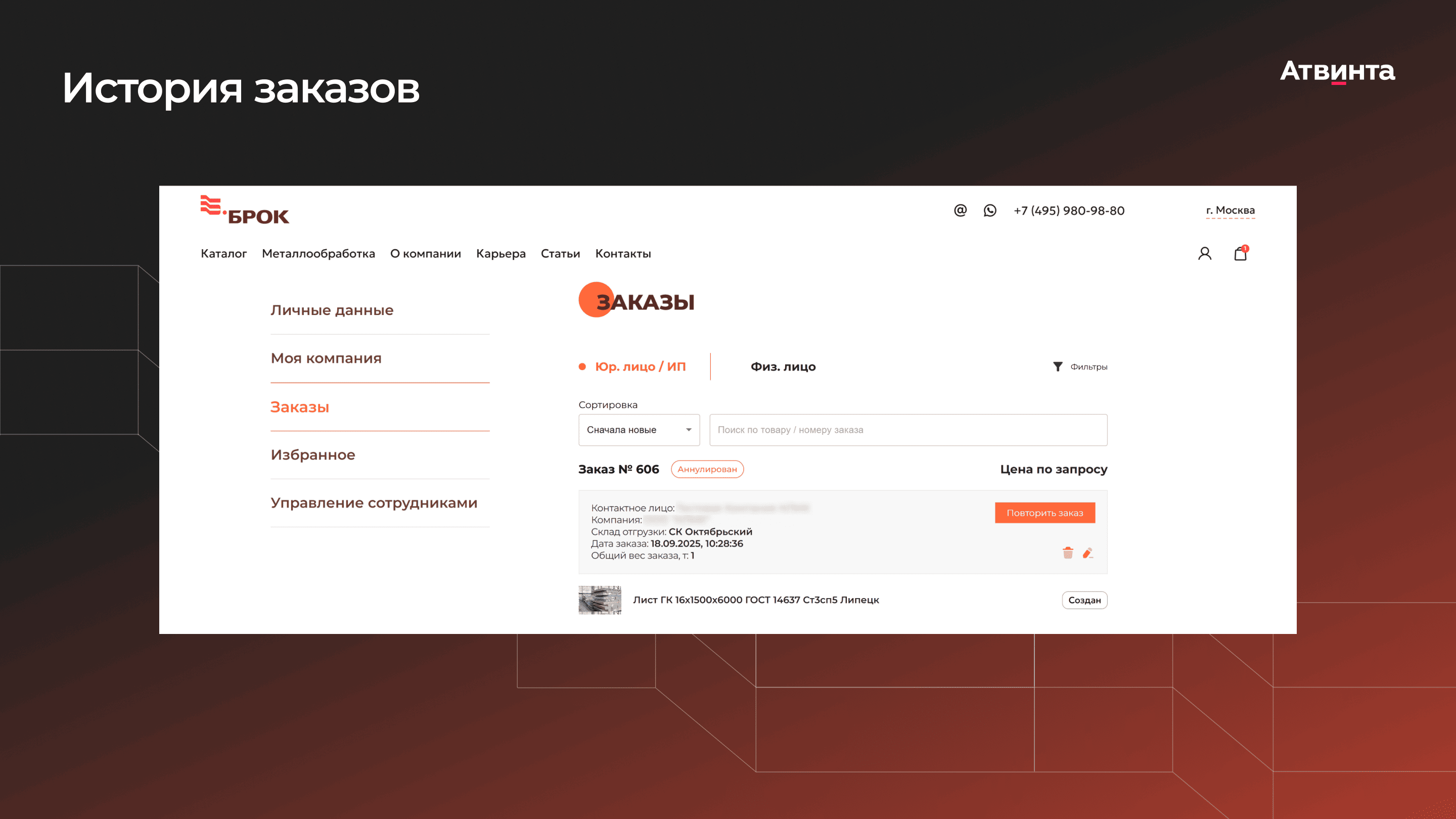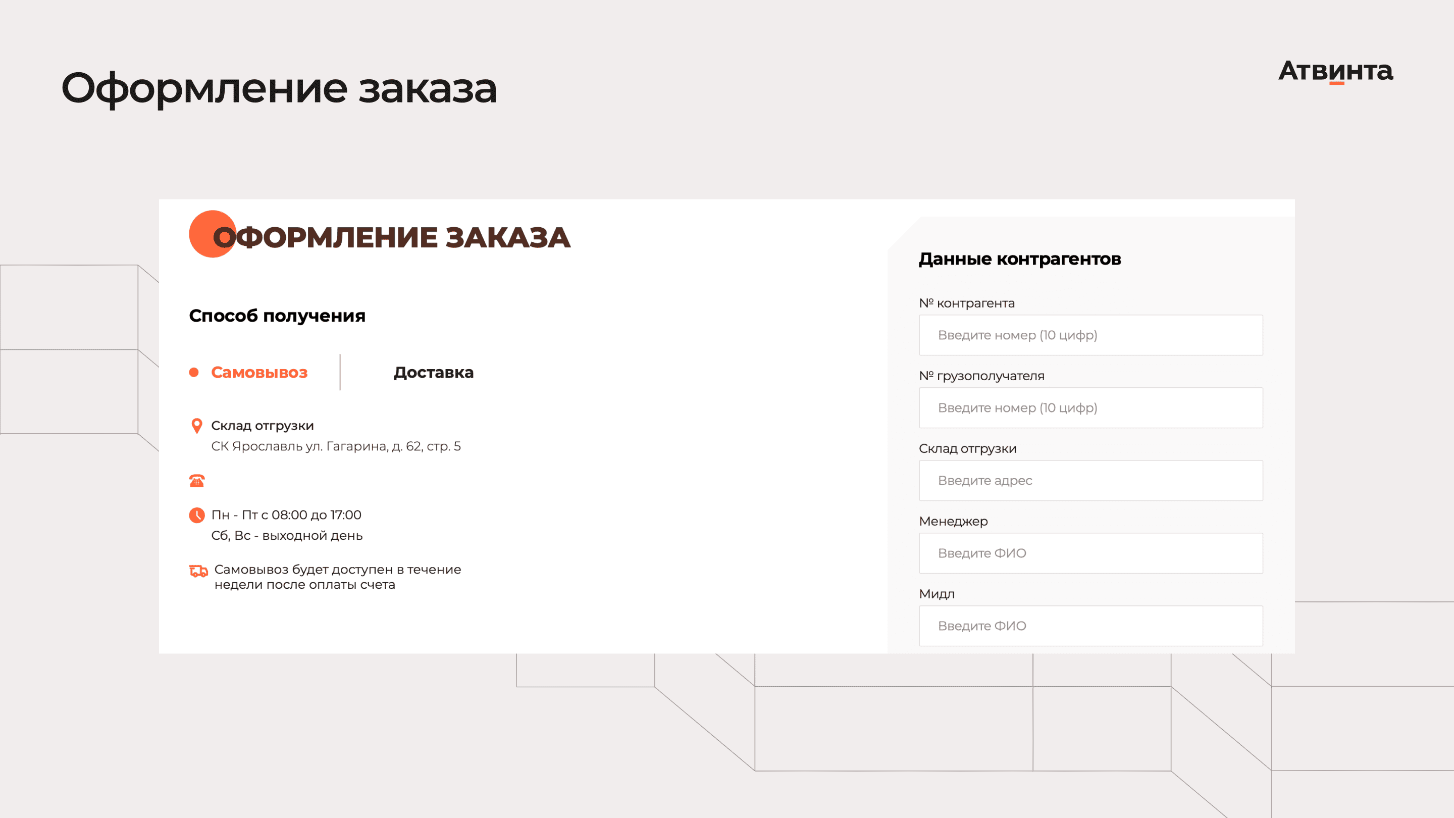 Упростили доступ к личному кабинету покупателей и улучшили этапы оформления заявки. Это позволяет получать заказы без ошибок и не тратить время на обращения в поддержку.