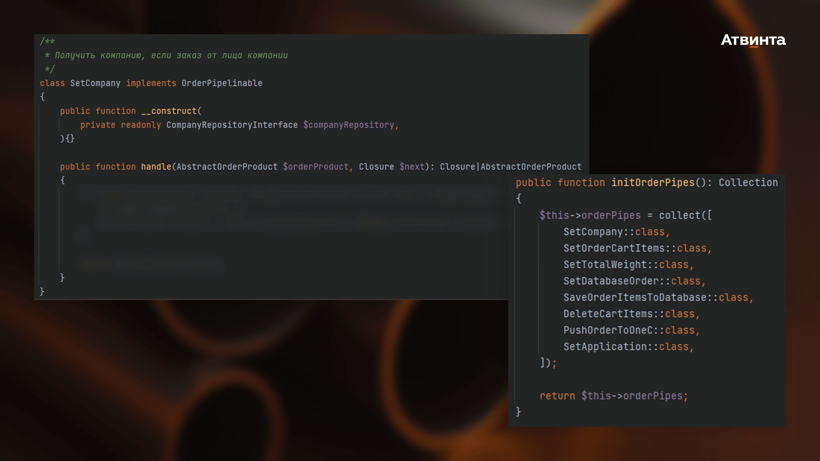 Навели порядок в коде, внедрив логику пайпов для оформления заказов. Пользователь не видит изменений, но это позволяет команде лучше работать с архитектурой, оперативно выпускать обновления и избегать проблем с системой.
