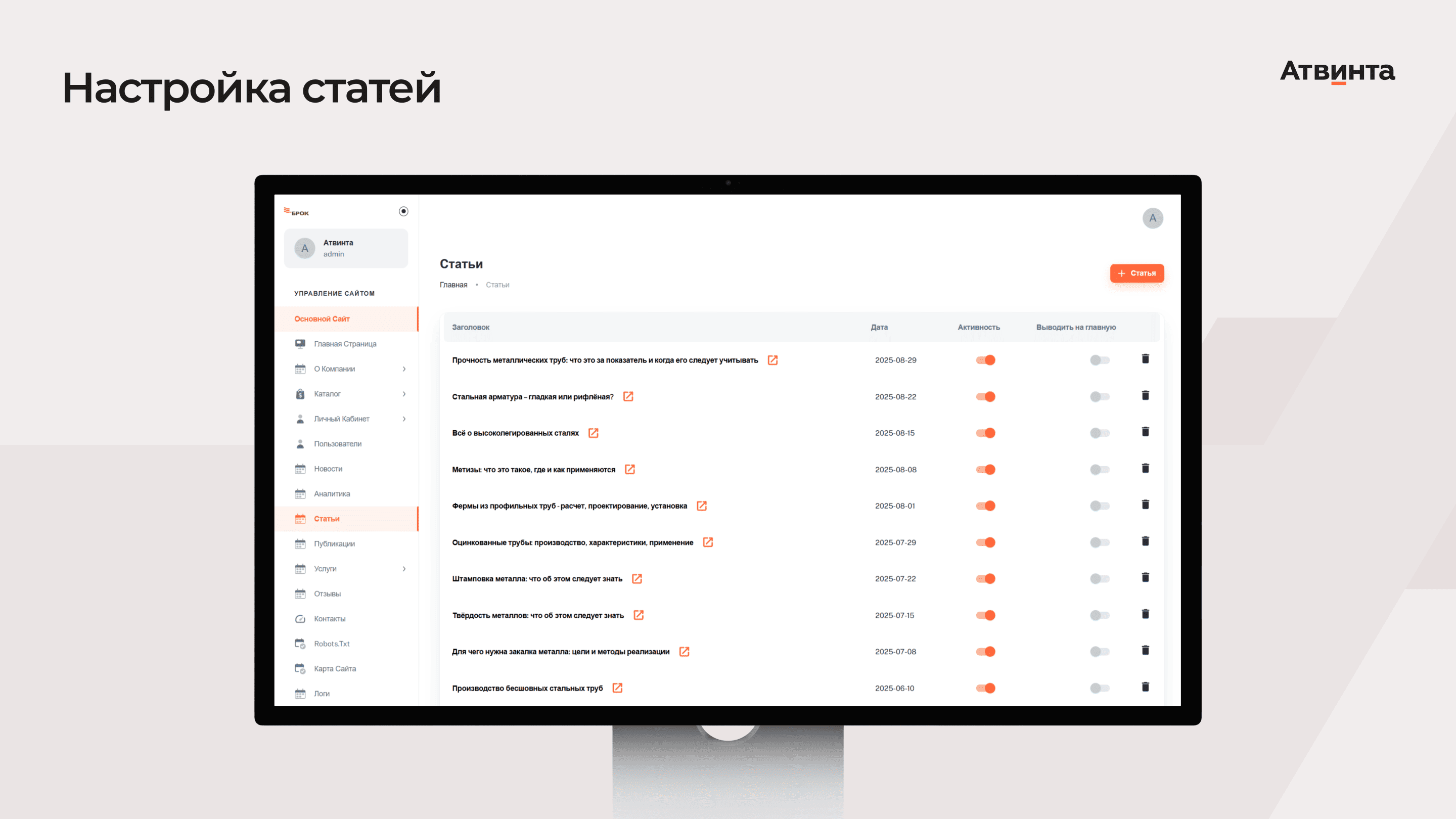 Сайт стал понятнее и сразу ведет пользователя к конкретному действию. Простая административная панель помогает менеджерам и сотрудникам быстрее вносить изменения и добавлять новые материалы.