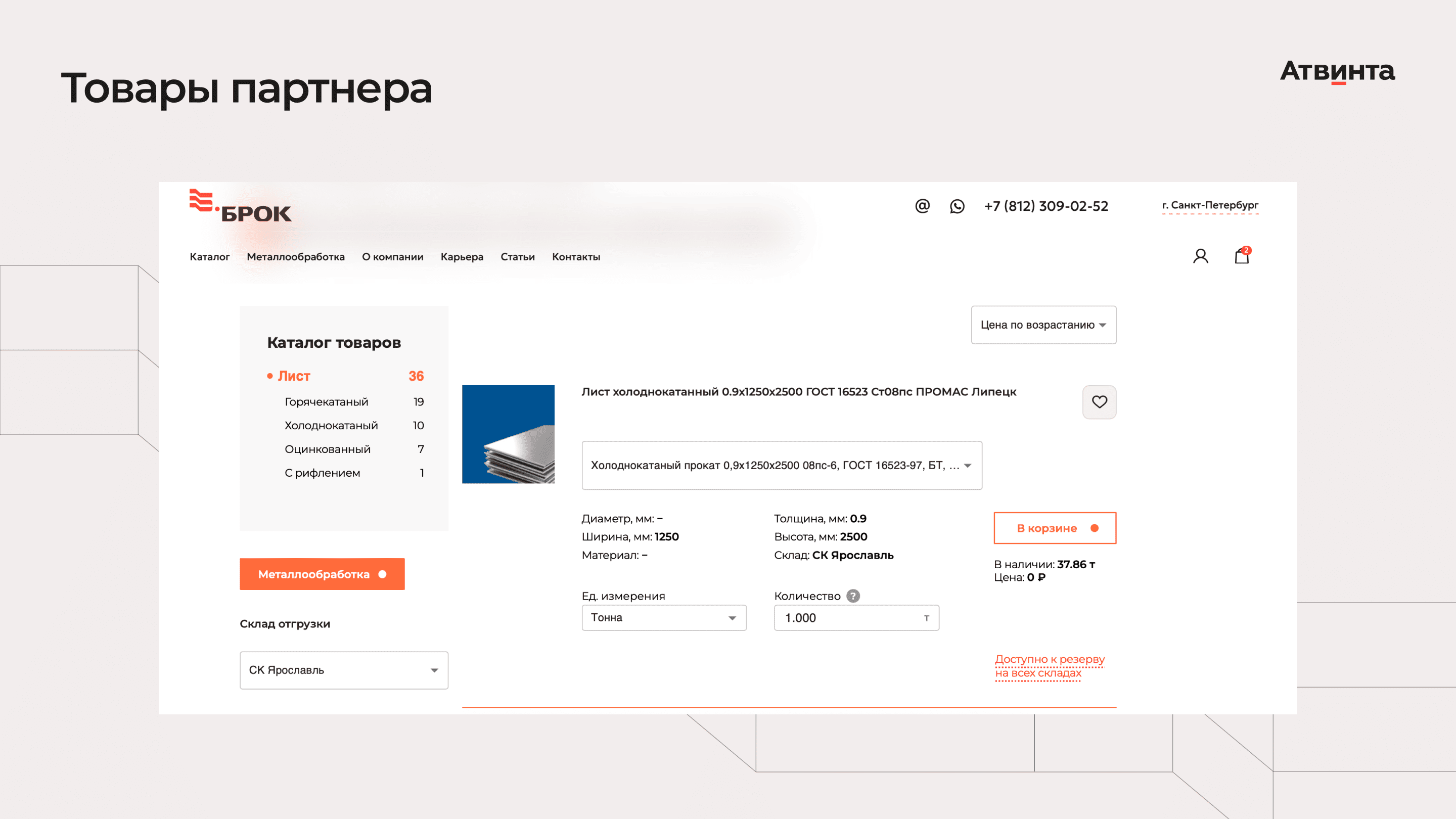 Товары партнера на сайте «Брок-Инвест-Сервис»