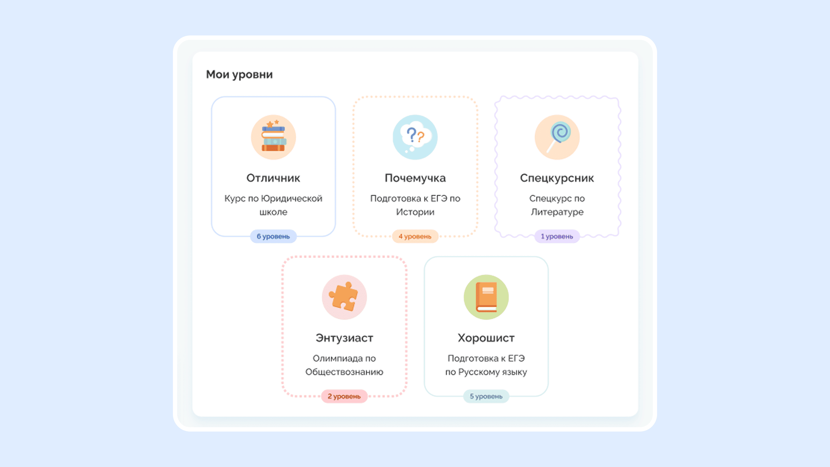 Уровень повышается при достижении определенного прогресса — успешное прохождение заданий или тестов, серия ежедневных посещений платформы, участие в челленджах и тому подобное.