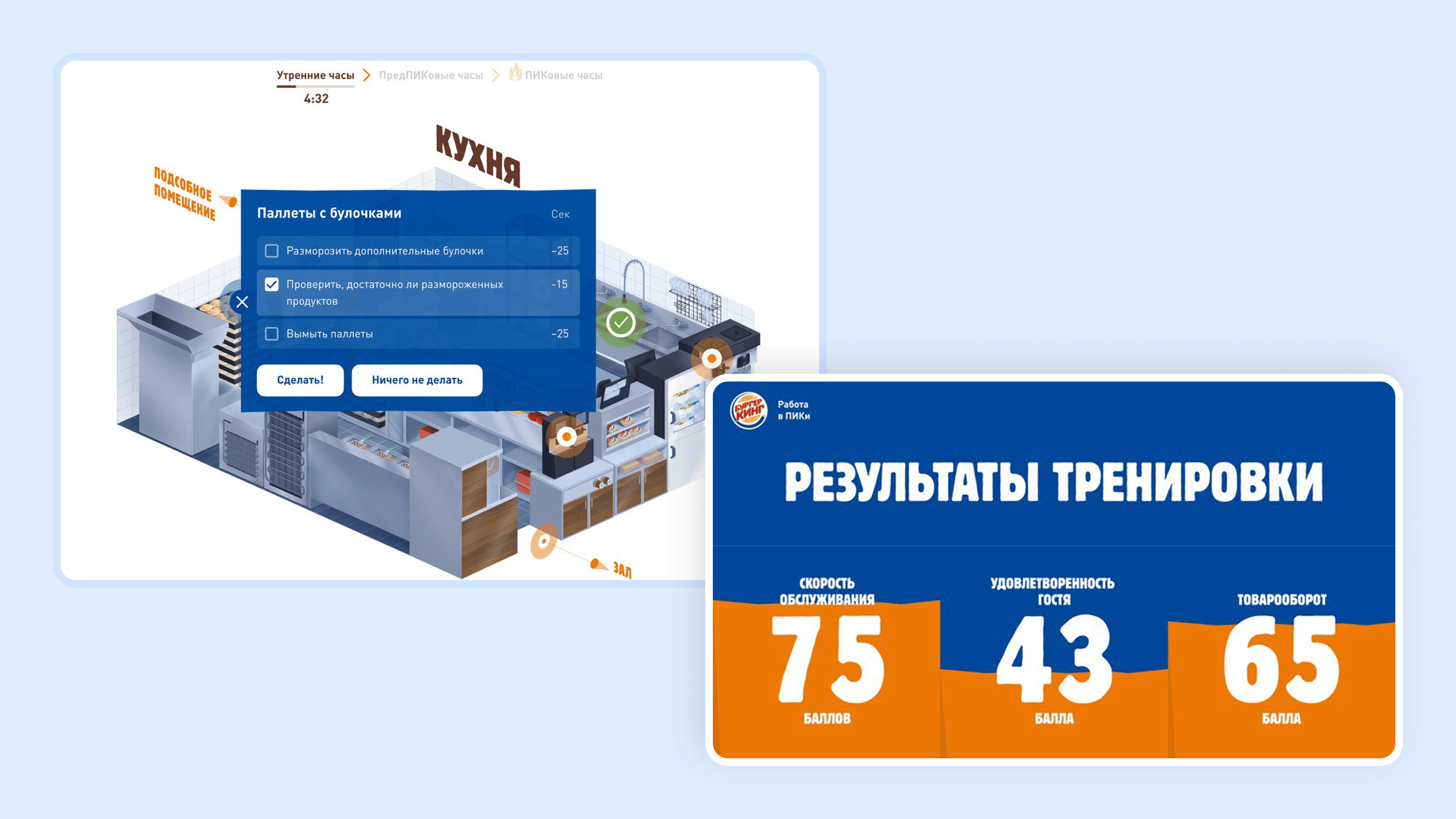 Геймификация процесса в тренажере для сотрудников Бургер Кинга