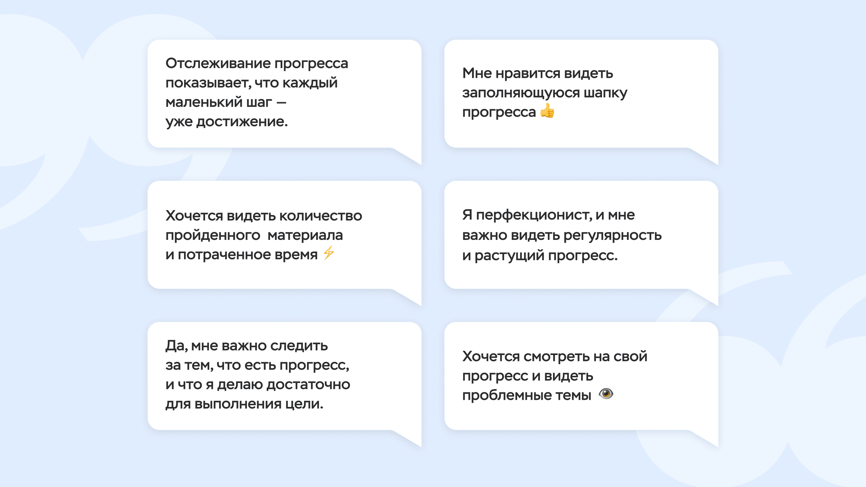- Рост и достижения. Фиксирование прогресса, преодоление трудностей и получение удовлетворения от результатов и развития.