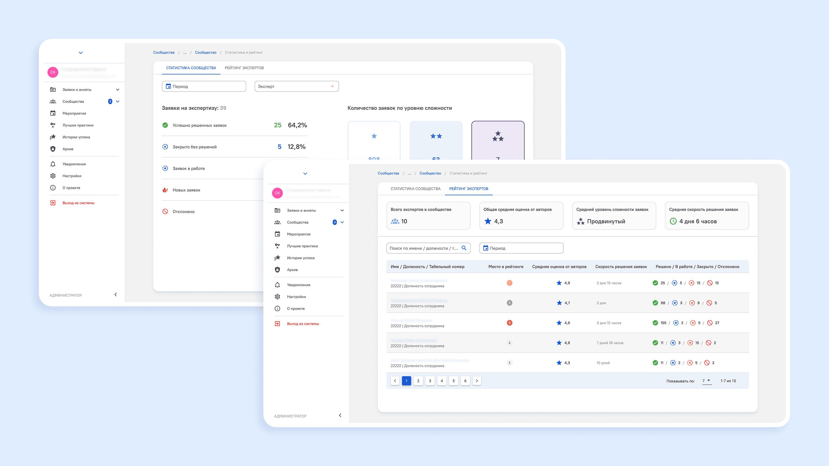 Для крупного холдинга мы реализовали сервис «Экспертные сети». Задача проекта заключалась в том, чтобы ускорить обмен знаниями и упростить взаимодействие между командами. Эксперт отвечает на вопрос, получает баллы за свою активность и увеличивает свой рейтинг. Это позволяет расширять компетенции, участвовать в проектах компании и получать бонусы.