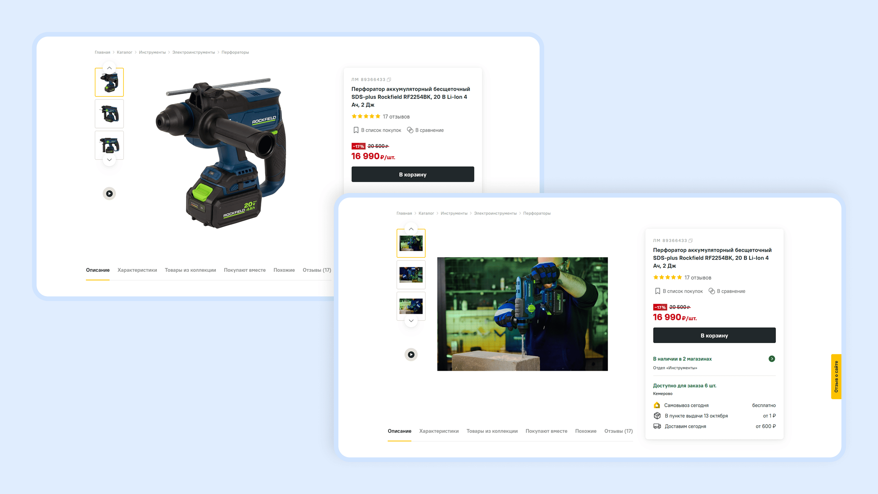 Разместите стоимость и скидки доступно и прозрачно. Покупатель должен понимать разницу старой и новой цены, условия акции и бонусной системы, а также информацию о наличии в выбранном регионе. Добавьте данные о сроках, способах доставки и вариантах оплаты. Например, как работает самовывоз и экспресс-доставка для данного товара. Это экономит время пользователя и снижает количество отказов на этапе сравнения продукции у конкурентов.