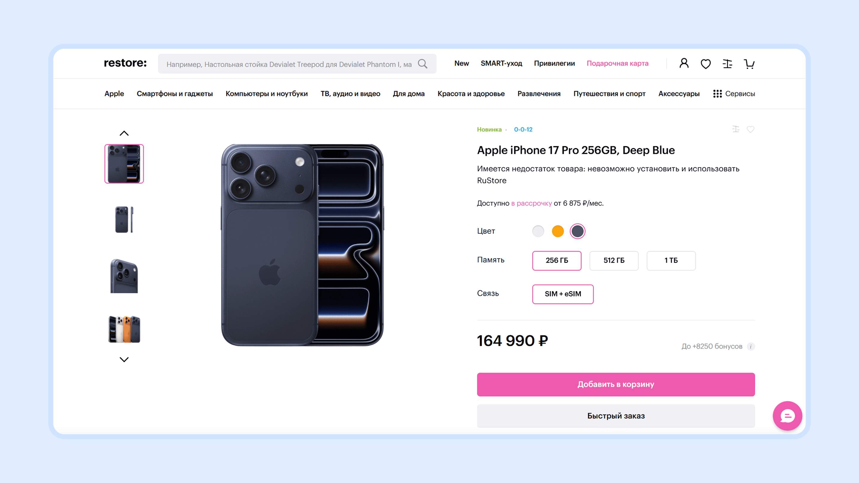 Укажите информацию о размерах, цветах и комплектации товара в карточке. При выборе параметров покажите разницу в цене при выборе другой модификации. Ошибки в заказах и возвраты чаще связывают именно с плохо оформленными вариантами продукта. Например, пользователь оформил покупку на смартфон не того цвета.