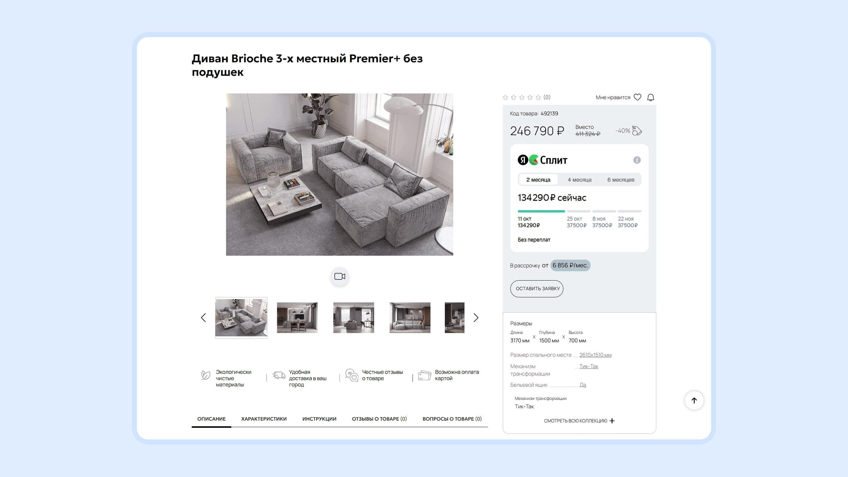 Структурированная карточка ускоряет путь к покупке, удерживает внимание, снимает сомнения и снижает количество отказов.