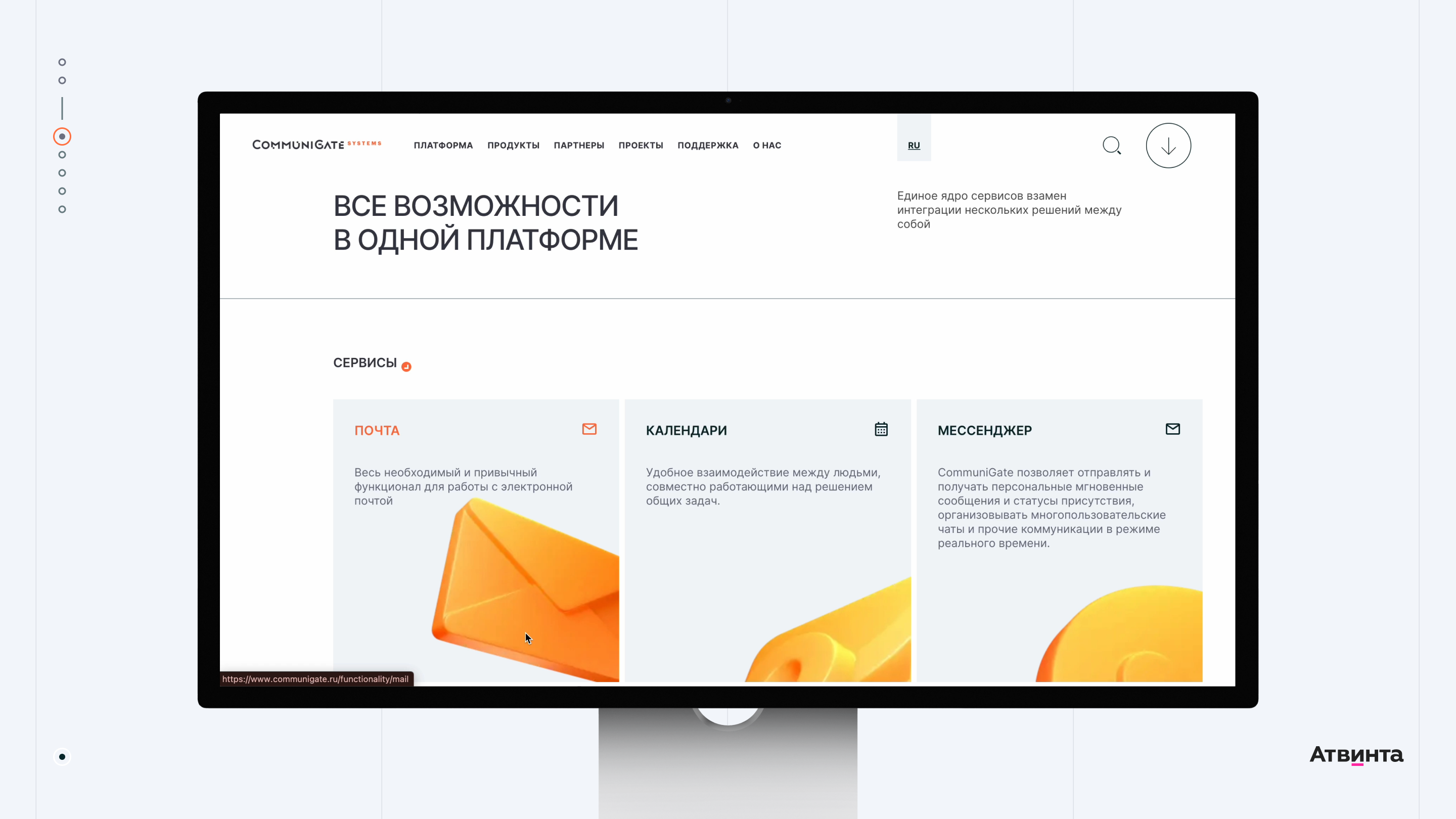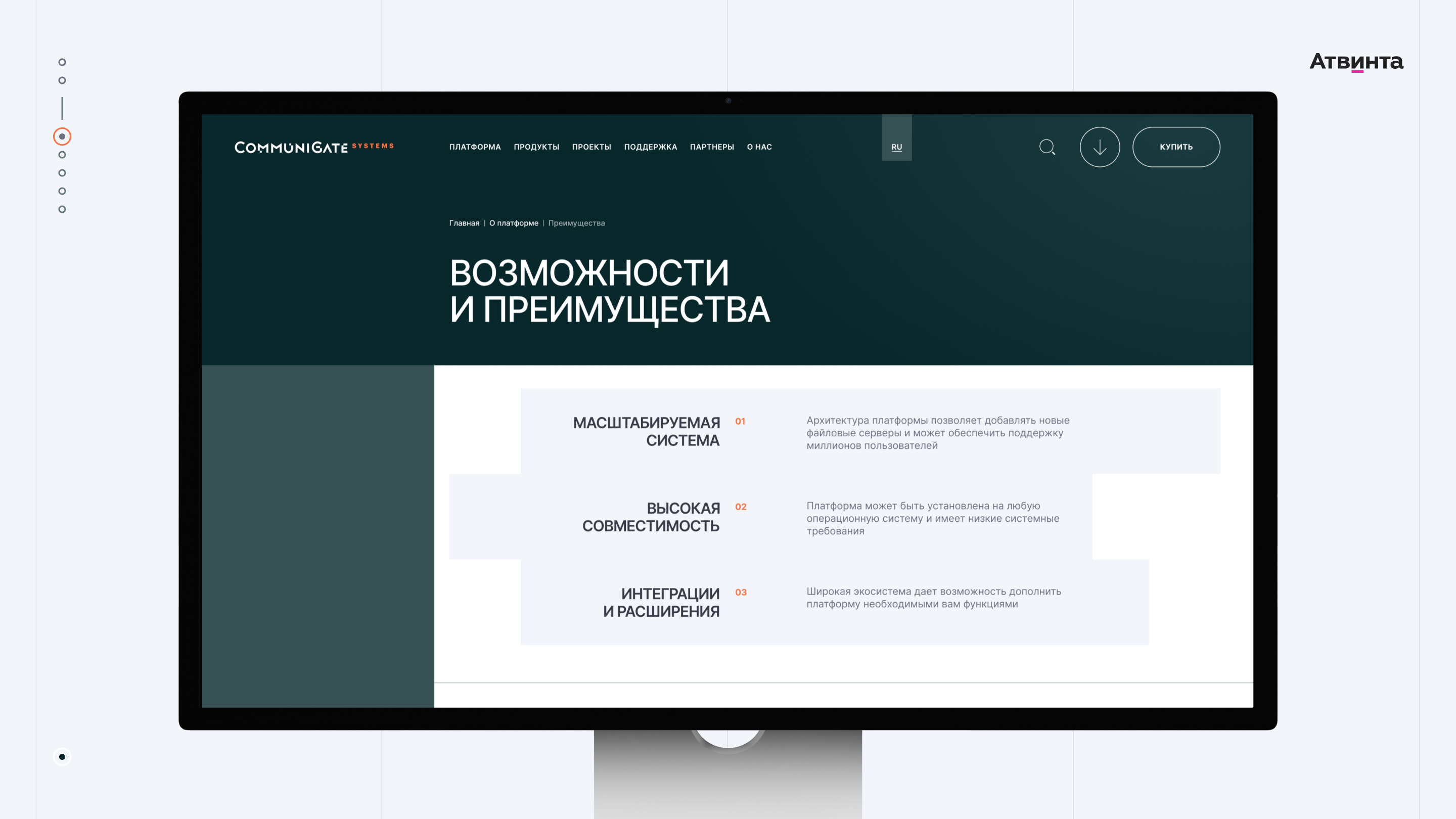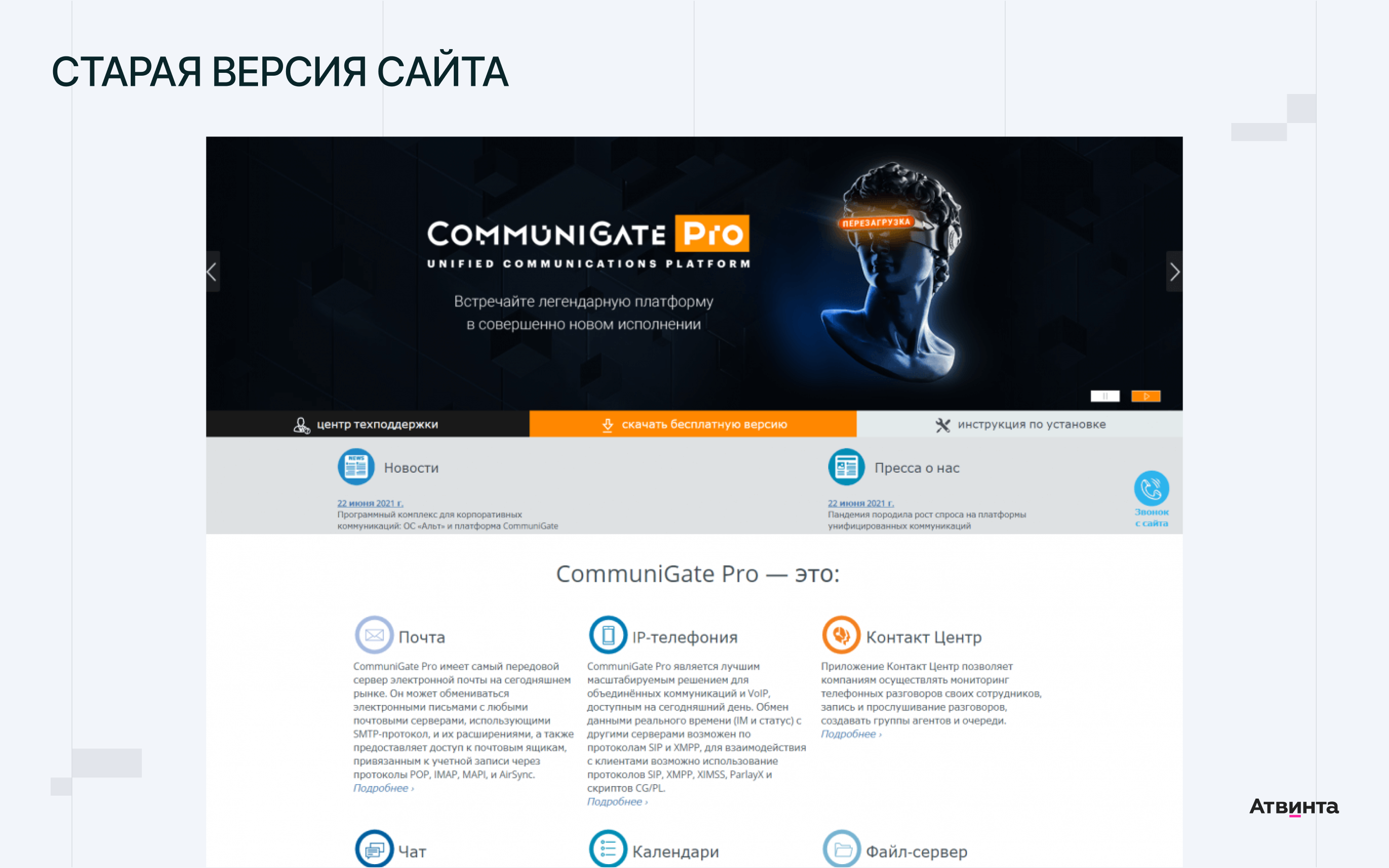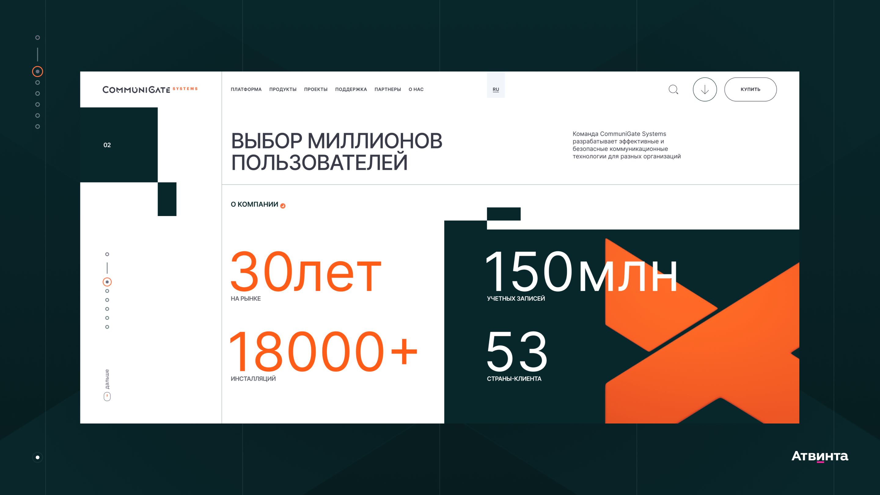 Разработан корпоративный сайт, который знакомит пользователей с начинкой и преимуществами IT-продукта Communigate.