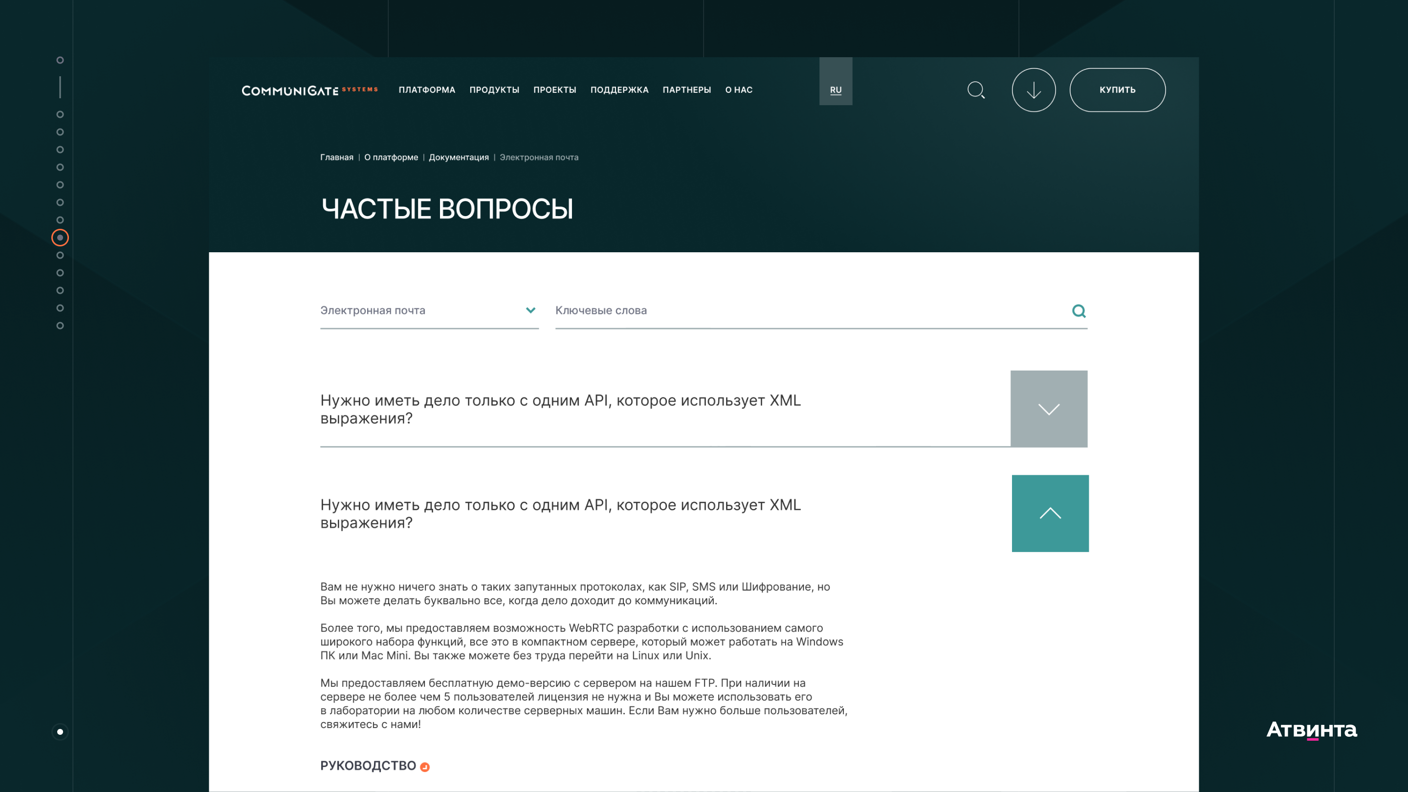 Специфический момент в нише IT-продуктов — долгосрочное взаимодействие с клиентом после продажи. Клиенты спрашивают, как исправить баги, пользоваться теми или иными функциями, особенно на этапе внедрения. Отзывчивая техподдержка — один из критериев оценки вендора, и мы передали сайту часть таких задач.
