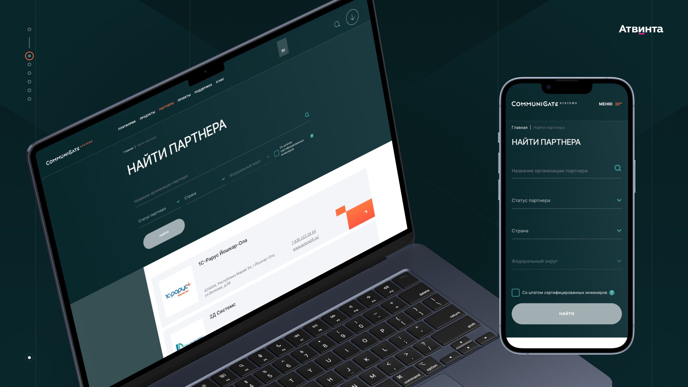 Чтобы не потерять заказчика на этом этапе, мы реализовали удобный поиск партнеров с фильтрами по специализации и географии. Также можно открыть карту и увидеть всех партнеров, предоставляющих Communigate в нужном регионе.