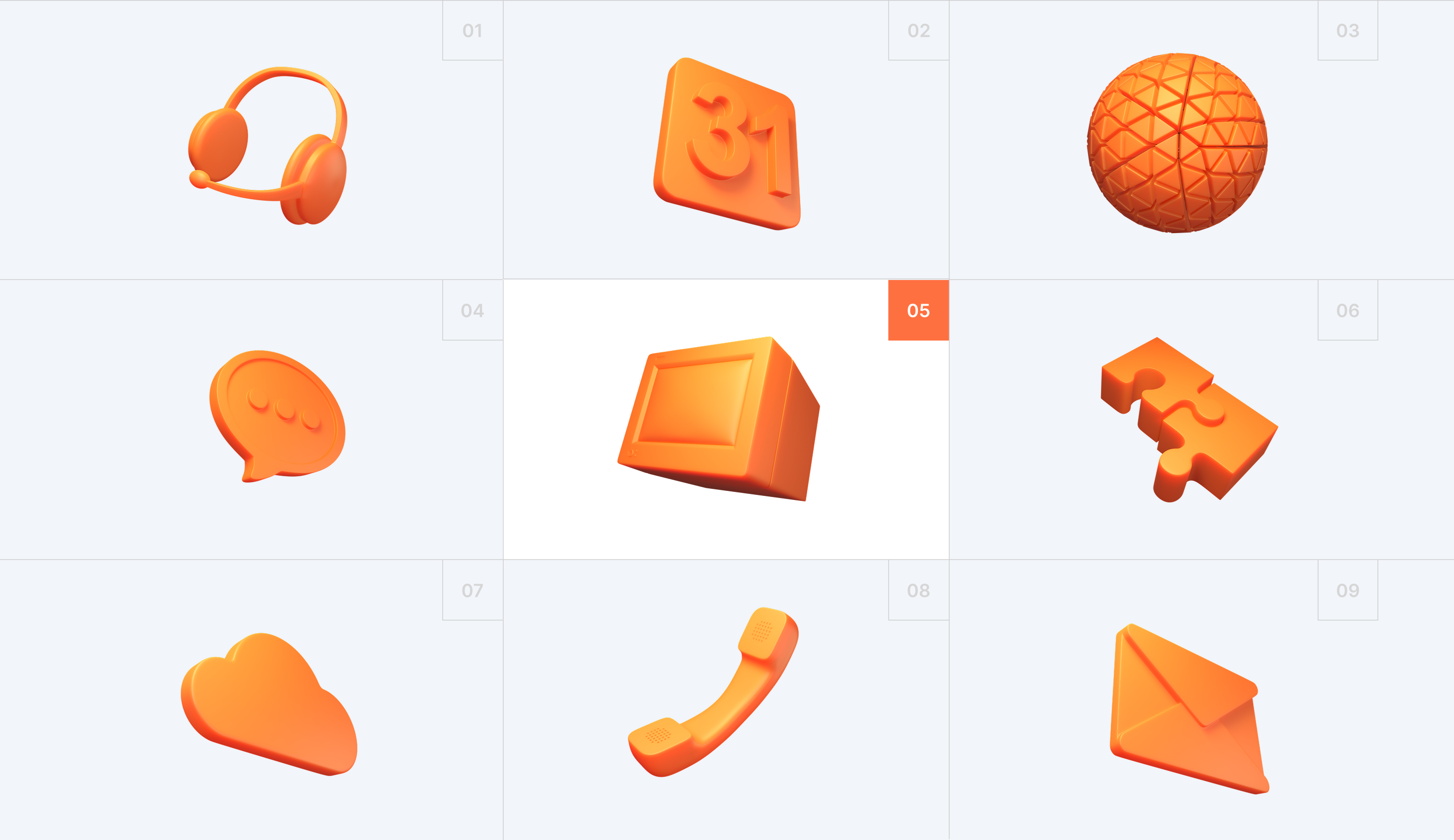 Чтобы показать общее видение, в предварительной концепции использован набор бесплатных 3D-элементов из Figma Community. Когда заказчик утвердил концепцию, мы перешли к разработке кастомных объектов.