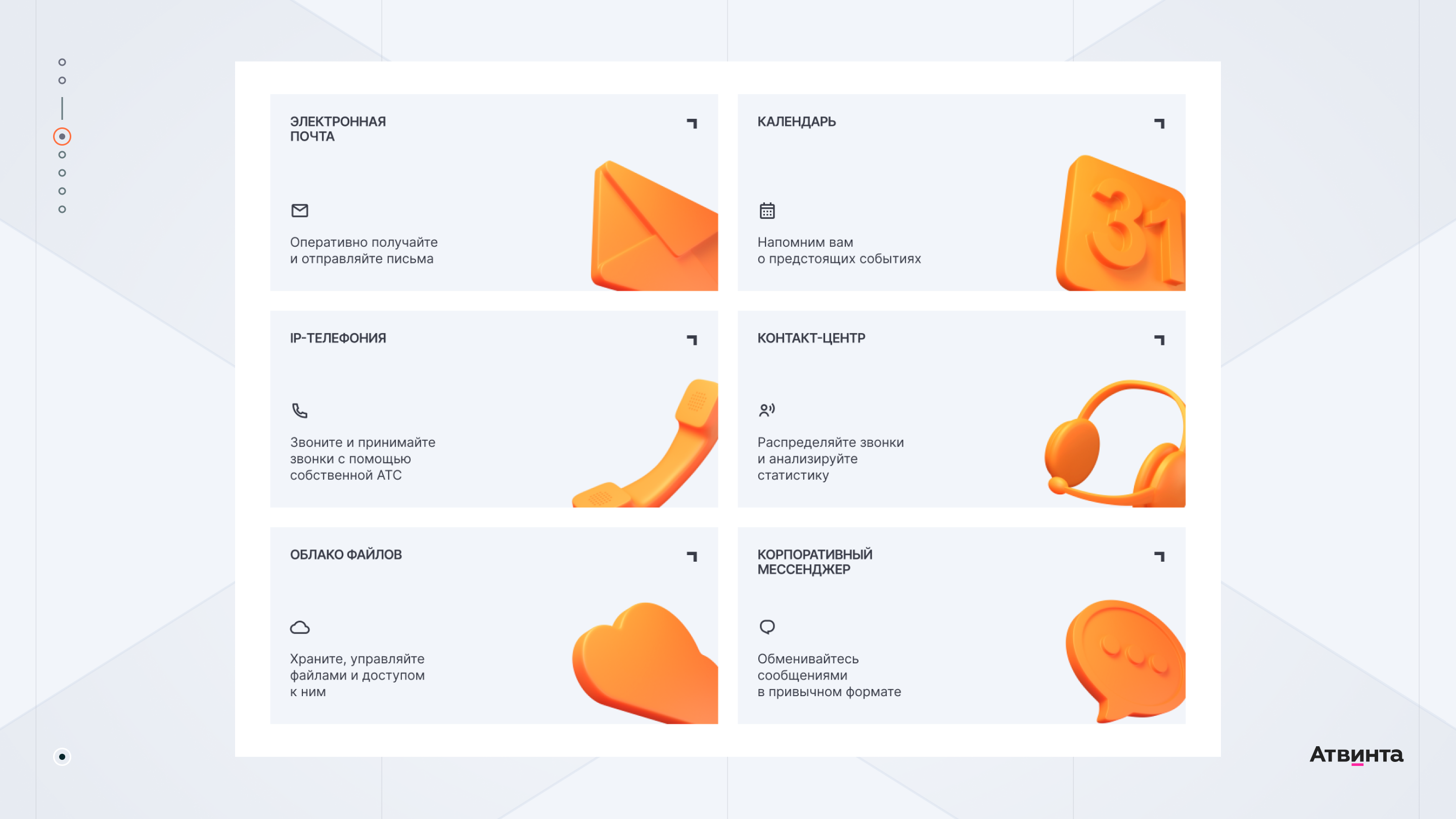 «Мы решили освежить этот прием и вместо стандартных плоских иконок отрисовали 3D-объекты и анимировали их. Это оживляет интерфейс и добавляет ненавязчивое визуальное взаимодействие с посетителем сайта».