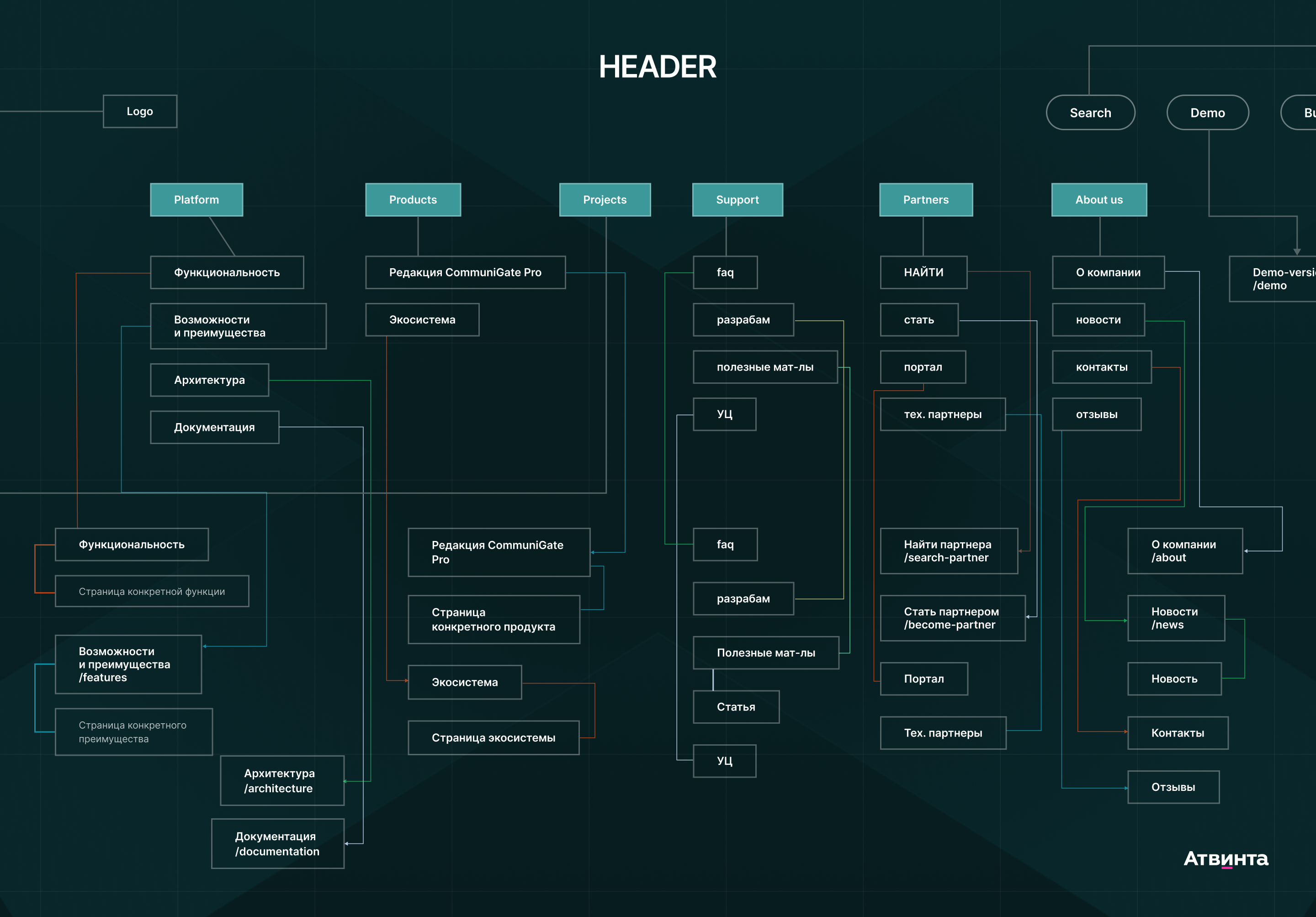 На прошлом сайте архитектура Communigate была представлена смешанно — редакции, сервисы и дополнительные решения не были разделены. Из-за этого пользователь покидал сайт, так и не поняв, что из себя представляет софт.