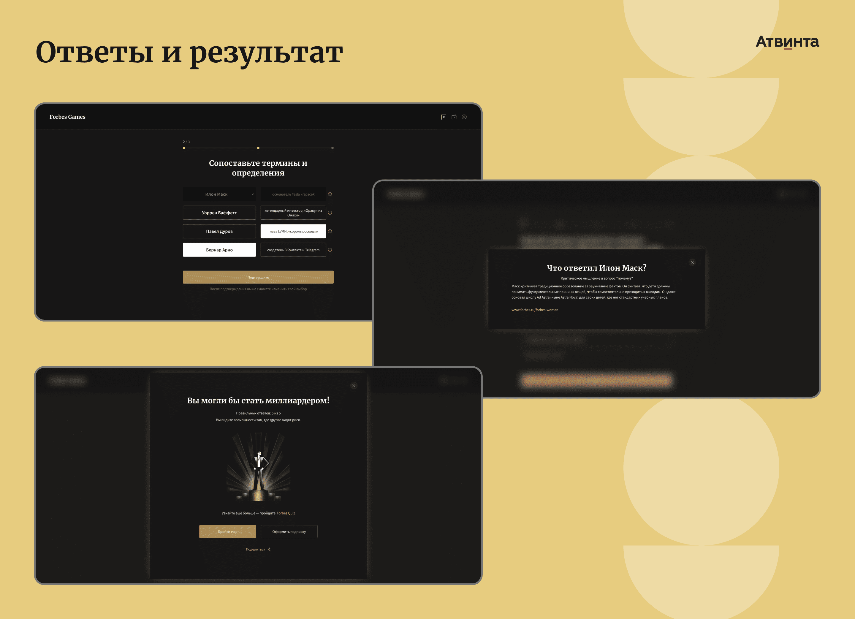 Мы спроектировали модуль Forbes Games как основу для развития полноценного игрового направления бизнеса. В дальнейшем планируем улучшать и масштабировать проект.